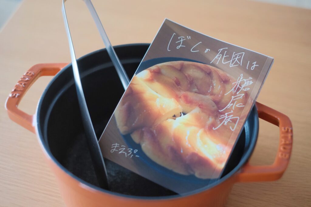 Catch Copy Achieve 自主制作本タイトル 『ぼくの死因は糖尿病』 maepu_ 2025年9月4日 自主制作した書籍のタイトルを自身で考えております。 間食がとまらない筆者が綴る「食」をテーマにしたエッセイとなり、将来を姿を垣間見えるタイトルにしました。