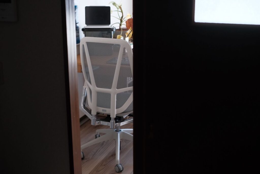 僕はフルリモートでの働き方でなく、週3日ほどは外での作業をしているので、「んじゃ、ゴリゴリに身を包んでくれるやつじゃなくてもいいか! スペース限られてるし!」となり、パームワークチェアに。
