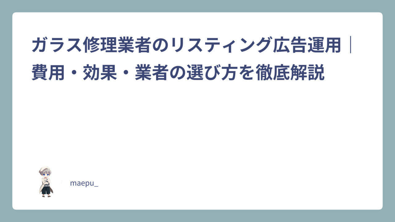 この記事では、ガラス修理業者がリスティング広告を活用する際の基礎知識から費用感、代行業者の選び方まで、実務的な視点でわかりやすく解説します。